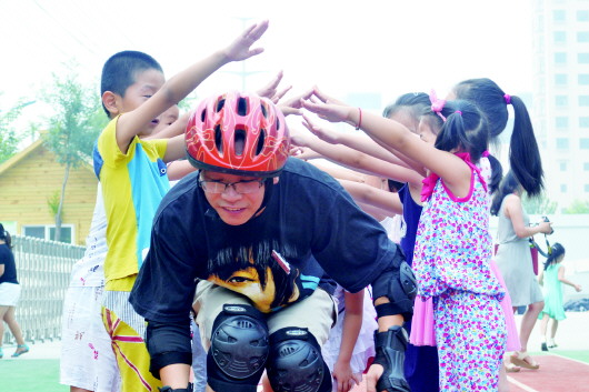 4日,滨城一小幼儿园老师带孩子做互动游戏。该园5日正式开园,幼儿入园前一天,邀请150名幼儿来到园内,通过不同的游戏活动缓解入园焦虑,尽快适应幼儿园生活。