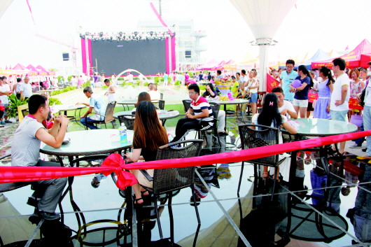8月2日,由山东大河投资(集团)有限公司、中国喜文化产业有限公司、齐鲁晚报联合主办,齐鲁晚报·今日滨州承办,联合愉悦家纺、魏桥创业、华纺股份、滨州情侣婚纱摄影会馆、山东福人楼工贸有限公司、沪滨眼科医院、金都庆典婚礼策划公司、中粮可口可乐饮料(山东)有限公司共同打造的“爱在中海·情定航母”2014中海航母七夕鹊桥会在欢快的舞蹈、爱情歌曲中拉开帷幕。