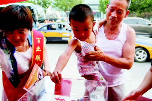 “我们定的目标是两万元,如果筹集不到,我们就自己抱着募捐箱到每个店面去募捐。”百业微盟的王总说。不论是企业老板还是员工,不论捐助的是1元钱,还是10元、100元、1000元,工作人员都向捐款者90度鞠躬感谢。