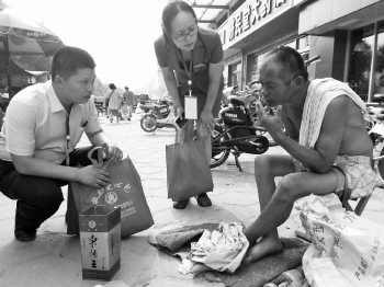 4日,市救助站工作人员来到水城大街小巷,开展“为乞讨人员夏季送清凉活动”。