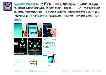 经过认证的微博账户“公安部打四黑除四害”此前也针对“微视通”这种新型网络传销做了警示,并给出了具体的判断标准:“如果需要入门费、没有实质项目和产品、对方明显要发展下线,符合其中任何两点的,都可判断是传销!”而“微视通”的模式恰好符合以上几个要点。