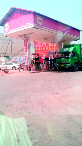 ◥强制绕行货车加油的加油站。