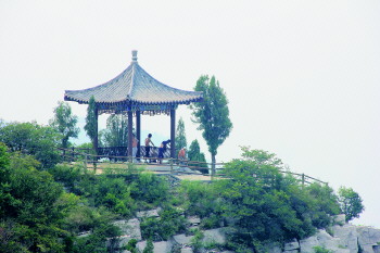 在佛慧山上的凉亭内,游客正在休息。 本报记者 李师胜 摄