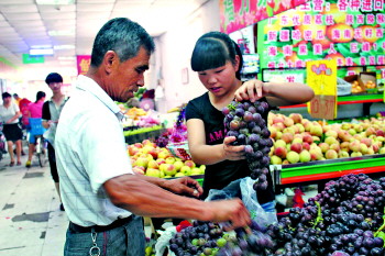 像陈铭一样的外来务工人员子女还有很多。7月31日,在天桥区杨庄市场,记者发现了多名学生模样的小摊主。济南明湖中学初三女生刘淑苇就是其中的一员。“阿姨,买葡萄吗?5块钱一斤,您先尝一个。”她一边说着,一边帮顾客装袋、过秤。“14块5,找您5块5”。