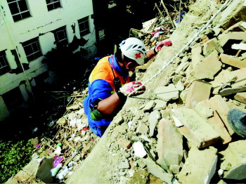 本报8月5日讯(记者 吕璐) 5日早上,李延照等5名青岛蓝天救援队队员经过一夜的急行军,到达地震核心重灾区龙头山镇。队员们一刻不停歇地在埋压点进行搜救。救援中还发生两次大的余震。截至5日19时40分,6名遇难者的遗体被队员们从废墟中挖掘抬出。