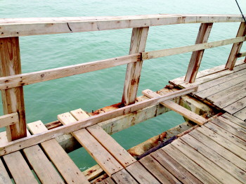 “像现在这个样子有好几天了,一直也没有人来修一下。”一名常来此处垂钓的市民说,前段时间受台风影响,海边浪很大,将这段木栈道的木板掀起冲走,有的木板直接被海浪带到海里了。在附近工作的一名环卫工人说,木栈道被破坏的当天,有人来查看统计了,但是过去好几天,也不见有人来修。