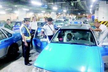 5日上午10点,青岛市道路运输管理局和青岛市质量技术监督局的工作人员来到青岛流亭国际机场地下停车场一层,对停靠在此处的出租车进行检查。运管局的工作人员检查出租车服务经营许可证及服务资格证,质监局的技术人员则对出租车的计价器进行检测。