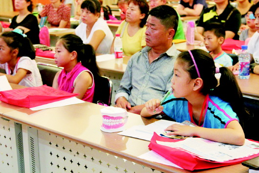 本报8月5日讯 2日早上,小记者们和家长早早的来到沪滨眼科医院等候活动开始。活动分为两个部分,一个是眼科和口腔科理论知识的讲解;一个是对孩子们视力和牙齿的检查以及免费为孩子们窝沟封闭。