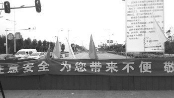 5日上午9时,在聊堂路与站前街路口,记者看到一则道路封闭施工的指示牌,提醒车辆绕行。机动车道已经全封闭施工,非机动车道目前可以通行,但非机动车道很窄,只能允许两辆车同时通行。但由于此处临近西站与火车站,客流量和车流量都特别大,时不时会发生堵车现象。部分大型客车、公交车辆已经绕道湖南路与海源路。