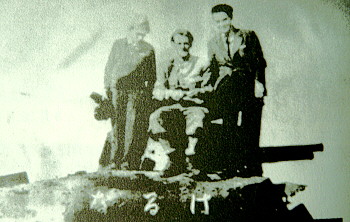 1938年卡帕拍摄的伊文思和他的助手卡帕、学生弗尔纳汉等人在台儿庄大战缴获的日军坦克上。