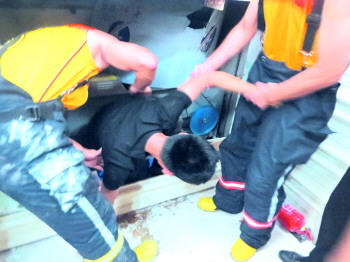此时,电梯在1层到2层中间悬停,且3楼、4楼电梯门还被封死,消防官兵进一步勘查后发现2楼电梯门是木制的,救援人员立即利用破拆工具将2层电梯门强行打开。梯门打开后,电梯上方还留有约30厘米的缝隙,恰好能容一人钻过。经过半个多小时的努力,救援人员利用这30厘米的缝隙将8名被困人员一一救出,无一受伤。