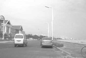 改造后的开发区金沙滩海滨路,更加大气、美观、便民。在享有外观专利的400多盏现代造型的景观路灯的伴随下,人行道路铺装采用天然黄锈石石材,绿化带造型或水环状或波浪型,万米金沙滩以新的面貌迎接市民和游客。