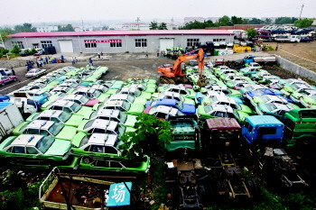 本报8月6日讯(记者 周衍鹏) 重型机车挥动大铲,不过几秒钟,一辆黑出租便被砸扁。6日,市交通运输监察支队在城阳集中销毁了137辆套牌黑出租、191台计价器及一批假车牌。据悉,这也是岛城近年来最大规模的一次黑车集中销毁行动。