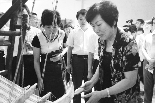 8月6日开始的滨州市文化产业现场观摩会让所有人员感受到了滨州文化发展的力量。水落坡民俗文化、无棣精美盐雕等无不展现了滨州文化产业的魅力。图为滨州市委常委、副市长祁维华等在意象博物馆兴致勃勃参观古典家具。