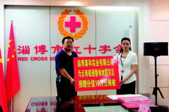 6日下午2点,泰和实业有限公司负责人王延刚来到了市红十字会特设的昭通地震捐款会议室,代表企业将价值10万元的物资交到了红十字会工作人员手中。王延刚说,看到昭通地震的消息,公司员工都很震惊,希望通过汇集整个企业的力量帮助灾区群众。据了解,泰和实业捐献的10万元物资成为淄博市目前接受到的最大一笔物资捐助。