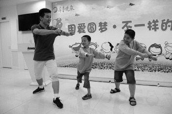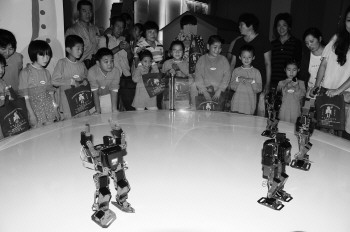 孩子们惊喜地看着机器人表演的舞蹈。 本报记者 姜文洁 摄