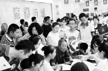 京都商城“1元入股京都会”活动吸引大量市民前去咨询。 杨淑君 摄