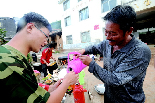 “他的两个女儿都是大学生,大儿子打工,小儿子也已经上初三了,他大女儿就在我们昭通市一家医院上班,震后为了照顾伤员都没来得及回家,80多岁的老母亲也为我们忙前忙后,还每天想着给我们烧热水。”雷朝林说。