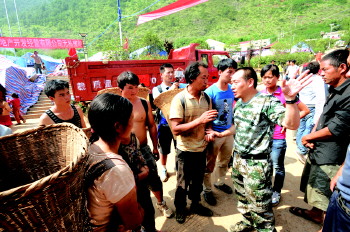“虽然没来过灾区,但是我知道在这里没有什么比秩序更重要了。”胡金龙说,由于救援物资是统一发放到村下面的社长手中的,群众自发来领是不能提供的。“老乡,要是单独给了你们,秩序就乱了。你们要是饿了,就先到旁边的供应点吃点饭,等下午社长来了,物资再一块背走。”胡金龙赶紧解释。