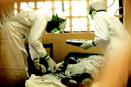 史上最严重的一次埃博拉病毒疫情正在西部非洲蔓延,已经夺走了900多人的生命。由于该病毒可经患者体液或者分泌物传播,因而身在第一线的医护工作者无疑是高危感染人群,日前已陆续有医生被确诊感染并死亡。尽管如此,仍有大批国际医护人员前往疫区,坚持抢救病患。
