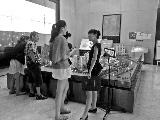 省城东部一家楼盘销售中心,购房者在看房。 本报记者 喻雯 摄