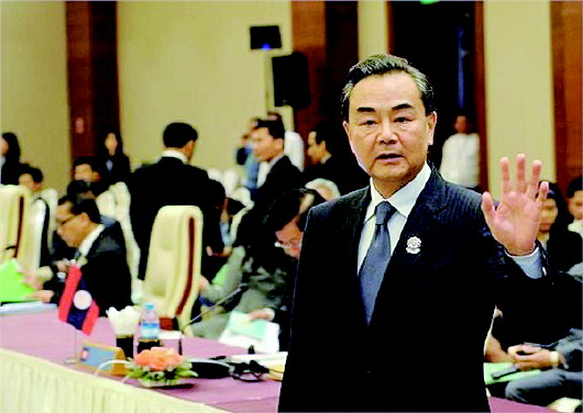 9日,在缅甸出席东亚合作系列外长会的中国外长王毅。