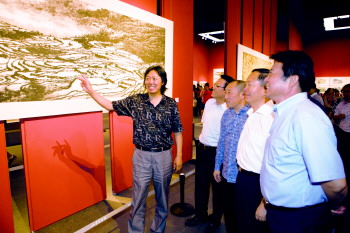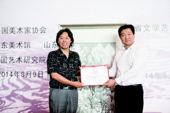 由中国美术家协会、山东省文学艺术界联合会、山东美术馆、山东省美术家协会联合主办的“齐鲁行——丁杰山水画展”于8月9日在山东美术馆开幕,共展出丁杰先生近年来潜心创作的山水画精品125幅。本次展览得到了社会各界的广泛关注,2000余名观众慕名自发前来参加开幕式。