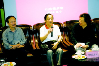 ▲韩美林先生在“齐鲁行——丁杰山水画展研讨会”上发言