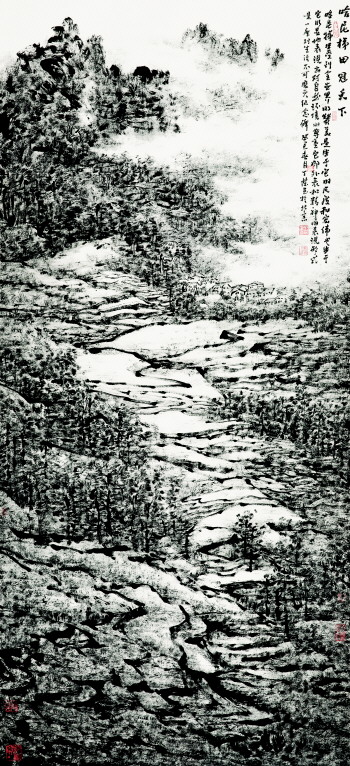据了解,本次展览展出的是艺术家丁杰2001年以来的优秀作品,其代表作《石魂》、《凝聚》等,富有鲜明的现实主义内涵与革新精神,笔力阳刚强劲,飞动的笔触和磅礴的激情显示着民族气魄。其近年新作《大地旋律》系列,将秀美的中国梯田用黑白彩墨,挥洒出一篇篇“祖国山河无处不美”的乐章。他的作品将传统理法精华与现代意识相结合,涵古纳今,在中华民族传统艺术审美价值取向的基础上,积极寻求与当下艺术发展相关的语言,将传统绘画艺术进行视觉形式意义上的创新,体现了当代山水画家的人文情怀和理想诉求。