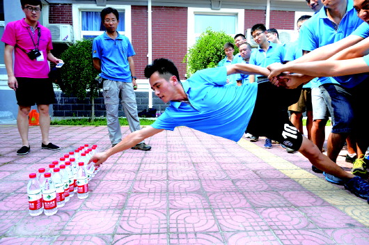 培训这几天让艾鹏印象最深的是激情拓展环节。四米高的围墙,300名学员要在30分钟的时间内全部翻越过去。在没有任何道具可以借助的情况下,几名男学员甘做“基石”,让后面的人从肩头踏过去,周围的学员都高举双手,保护他人的安全。全体人员在规定时间内完成了项目,当人梯的几个兄弟已经腿上见伤,却没有一句怨言。最后时刻,一名学员倒挂金钩,把最后一名战友拉了上来。“大家都在拼命地拉你一把、托你一下,不管认识不认识。那一幕让我特别感动,一个人的成长离不开团队,离不开大家的帮助。”