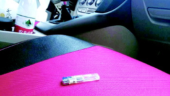 炸碎了的打火机飞射到了副驾驶座上。本报记者 康宇 摄