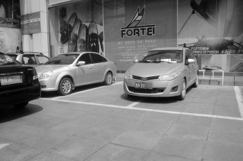 8月10日,正值周末,德百停车区内的停车位一位难求,但仍有部分不按标线停放的车辆,让其他车主难以停车,造成不便。 本报记者 马志勇 摄