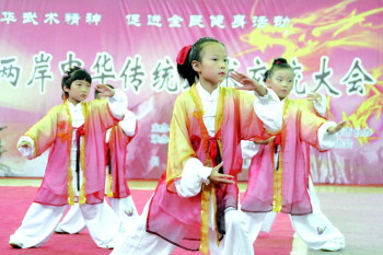 9日,2014年海峡两岸中华传统武术文化交流大会在菏泽学院体育馆举行,来自台湾及菏泽各地的47支代表队、771名武术运动员,相继参演拳术、器械、对联、集体等4大类武术项目。此次交流大会由山东省武术院、菏泽市体育局、菏泽市台办联合主办,为期两天。 本报记者 李德领 摄影报道