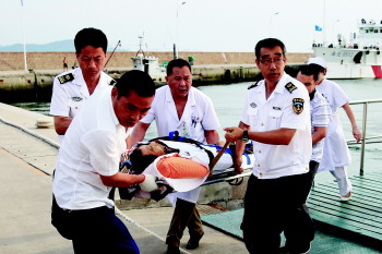 8日下午,渔船“鲁胶渔60088”轮上一渔民被作业器械砸伤,急需救治。在渔船附近海域执行任务的青岛海事局执法支队所属“海巡0511”轮接到命令后赶往支援。16时40分,受伤渔民被送上岸。目前受伤渔民已经无生命危险。