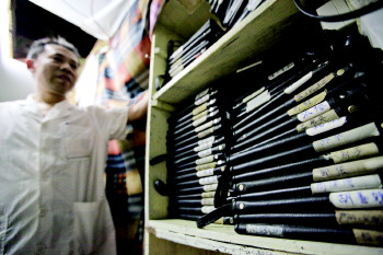 >徐希军的生意很火爆,他的储藏间里放了80多套客人寄存的修脚刀。