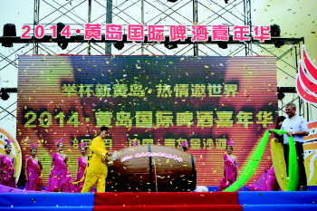 随着第一桶酒的开启,黄岛国际啤酒嘉年华活动正式启动。 潘旭业 摄