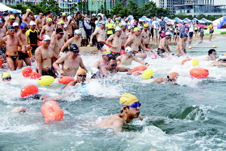 9日上午,在威海市国际海水浴场,2014年威海市公开水域游泳比赛暨“横渡刘公岛海湾全国游泳邀请赛”选拔赛开赛。全市的146名选手参赛,年龄最大的72岁,年龄最小的10岁。此次比赛全程约3000米。经过激烈角逐,45岁的刘洪泉第一个游到终点,用时32分50秒。今年威海有50余人可以参加邀请赛。