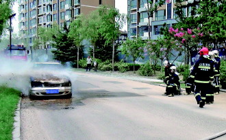 8月9日7时33分,文登龙港外滩南路,一轿车失火,文登消防龙山中队2辆消防车、14名消防队员赶赴现场救援。在现场,已有路人用沙土覆盖火点,但火势仍在扩大。消防队员首先疏散周边居民,同时用用水枪冷却汽车油箱,防止爆炸。约10分钟后,火被彻底扑灭,起火原因仍在调查。
