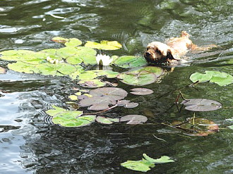 时间:2014年8月3日 自述:正宗狗爬式游泳法,只为来赏荷花。 点评:原来是只懂得欣赏美的狗狗。