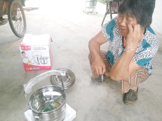 当谈到购买过程时,张先生的母亲后悔地说:“当时买的时候,看到功能还实用,还送那么多东西就买了,我现在也很后悔当时的决定。”张先生拿出了两件产品,一件被销售人员称为远红外电磁炉的商品,记者看到商品所用材质非常简单。