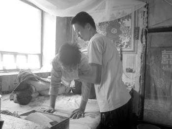 母亲患病多年卧床不起,孝顺的付双林一直悉心照料。 本报记者 孙淑玉 摄