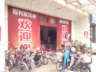 12日上午,记者来到枣庄市综合福利家具城看到,商场内地面上贴着的一些安全出口指示标识已经有些破损,而顺着指示的方向往北却没有发现有另外的出口。而大门处本可以打开3个的玻璃门只开了1个,门外还摆放了很多电动车和自行车,很是拥挤。