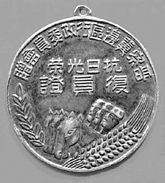 在我们家,珍藏着一枚保存完好的“抗日光荣复员证”(见右图),呈圆形,直径为37毫米,重量达9.5克。因长年用红布包裹,又藏于枕头中,历经近半个多世纪的风雨沧桑,至今仍图案清晰可见,透着亮光。