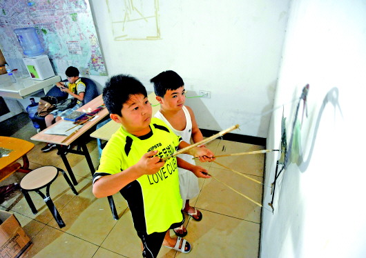 刚来济南,表演用的幕布还没有支起来,两名“袖珍人”就在墙上练习皮影。 一周前,8名“袖珍人”拖着重重的皮影戏道具,一起来到泉城。他们平均年龄22岁,平均身高只有1米26。他们渴望靠表演皮影戏的本事安家立业。 本报记者 张中 摄