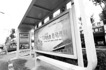 在干净整洁的公交站亭的映衬下,被破坏的玻璃看起来非常显眼,里面的广告布已经裸露出来。这块玻璃是8月7日发现被破坏的,目前济宁交运集团广告传媒公司的工作人员正在联系维修的工作人员。