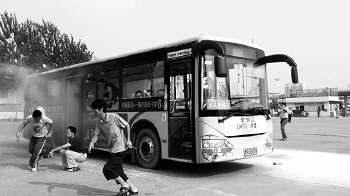 本报济宁8月13日讯(记者 庄子帆 通讯员 焦卫国) 一辆公交车上突然冒起黄烟,乘客惊慌失措纷纷通过被安全锤及一键破窗装置震破的玻璃逃生…… 13日,济宁市公共汽车公司举行了一场别开生面的火灾逃生疏散演练。
