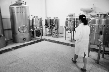 在实验室里进行葡萄酒酸性检测。 本报记者 李泊静 摄