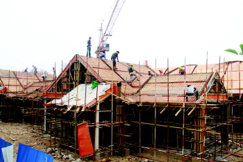 8月13日,古运河景区古玩文化街正在加紧施工。据了解,该项目2011年10月份开工,建筑面积1.5万平方米,建成后将整合德州古玩字画市场,打造古玩字画集散地,现场施工人员称项目10月份可完工。 本报记者 王小会 摄