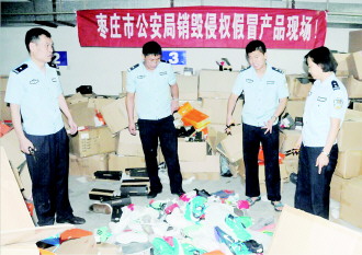 8月13日上午,枣庄市公安局经侦支队一大队组织人员,对近期查获的假冒耐克运动鞋3160双、假冒匡威运动鞋2520双,全部予以销毁。 本报通讯员 赵连友 本报见习记者 孟令洋 摄影报道