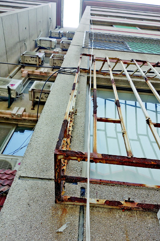 一根细细的电线从四楼而下。 本报记者 王杰 摄